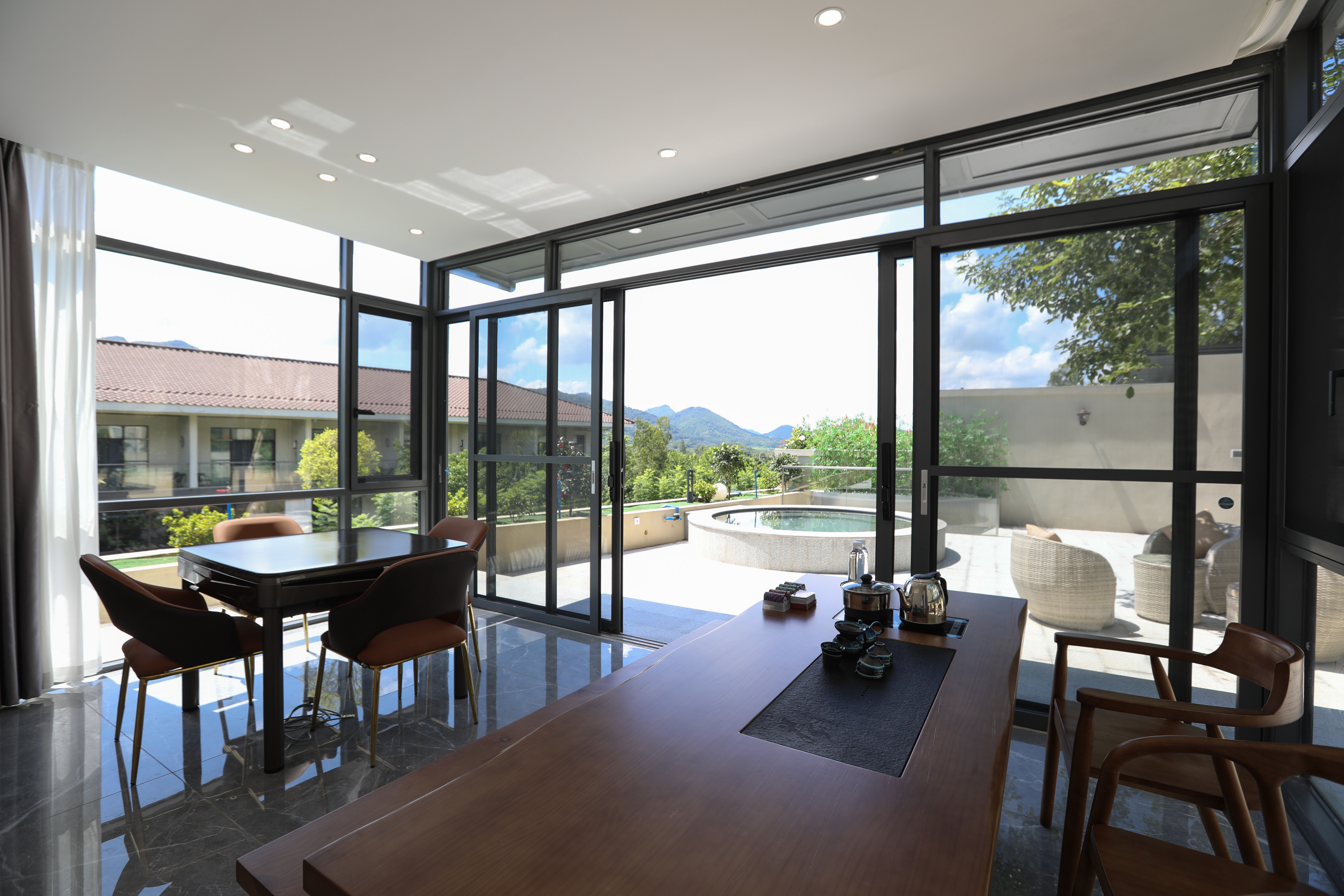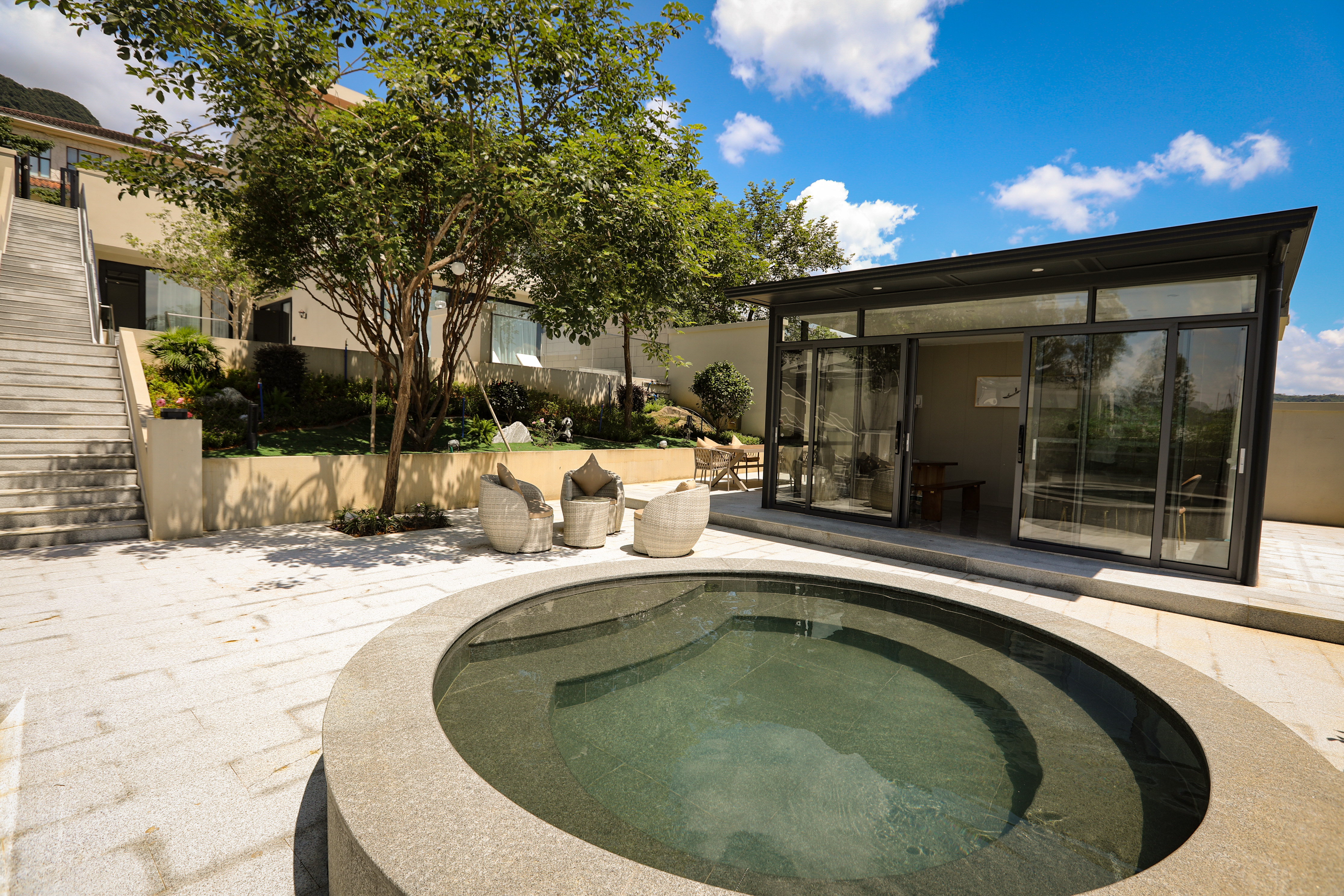 温梵山居5房温泉别墅-5个私家园林泡池-KTV-烧烤场-麻将房-观景卧佛山